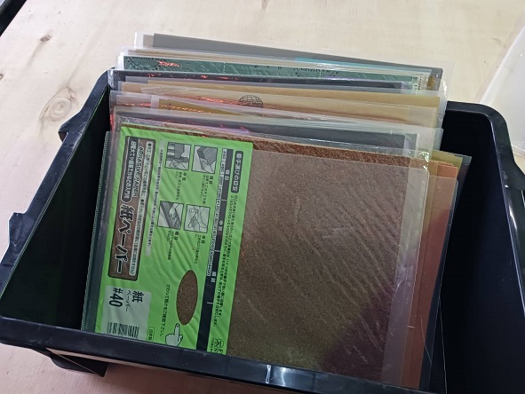 以前は紙やすりを引き出しに収納していましたが、使用する際に丸まって使いづらかったので、種類や番手別にクリアファイルで分け、丸まるのを防止しています。