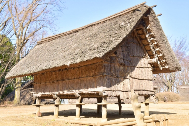 高床式倉庫は、稲や小麦、トウモロコシなどの農作物を貯蔵しておくために作られた倉庫で、その構造は、風通しを良くするため、床が高く作られており、神社などの建築工法は、高床式倉庫などの建築工法が発展したものと言われています