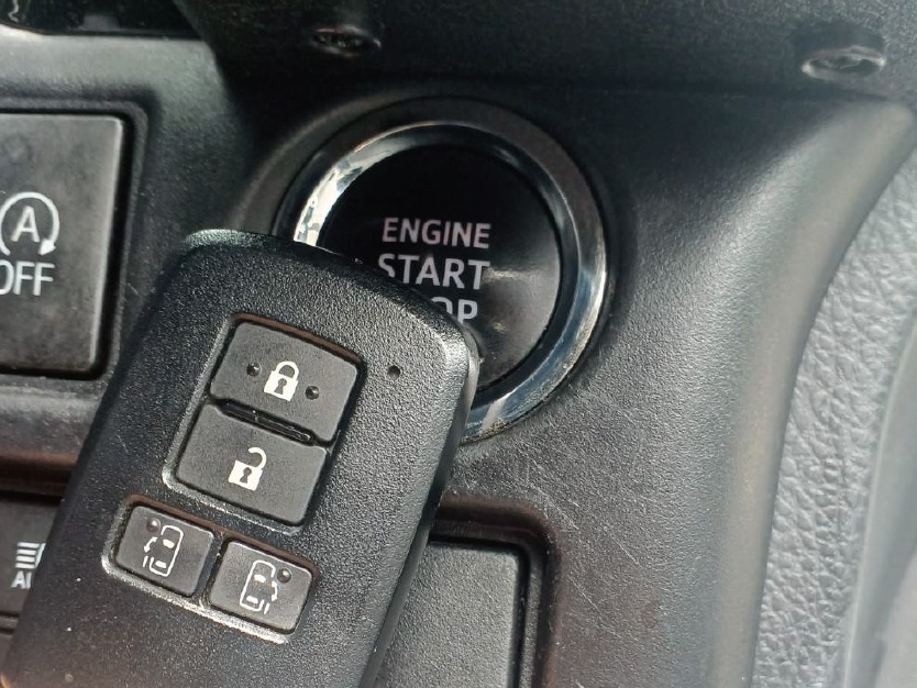 ドアは開きましたが、スマートキーが電池切れため、エンジンボタンを押しても、エンジンはかかりません。