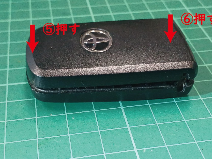 次に、蓋をして⑤からカチッと音がするまで押し込みます、⑥も同じ要領で押し込み、キーを元に戻して完成です。思った以上に簡単だったと思います。