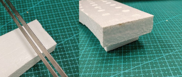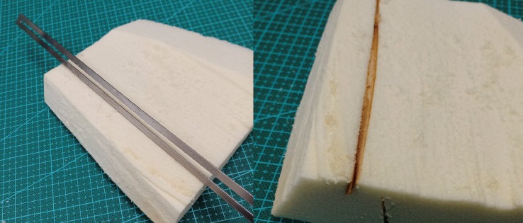 スタイロフォームは、発泡スチロールと比べると、やや抵抗感はありますが、それでもスパスパ切れます。